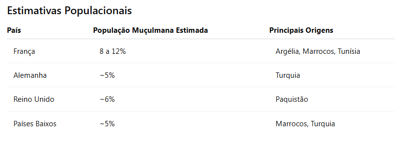 Após a Segunda Guerra Mundial, a Europa enfrentou uma escassez de mão de obra devido à destruição causada pelo conflito e ao envelhecimento populacional. Muitos países europeus buscaram trabalhadores estrangeiros para reconstruir suas economias, incluindo um número significativo de migrantes muçulmanos provenientes de antigas colônias europeias no Norte da África, como Marrocos, Argélia e Tunísia, bem como da Turquia e do Paquistão.